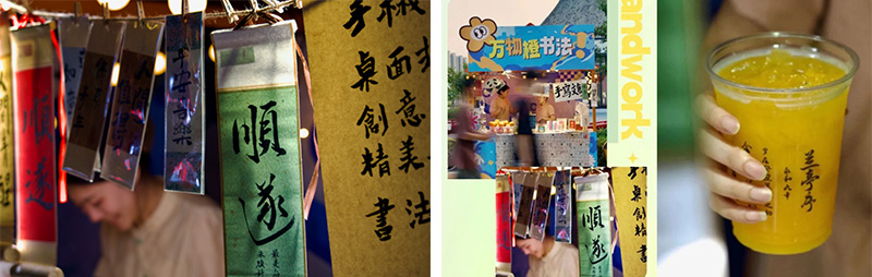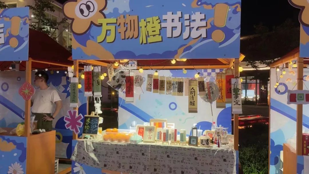 以手造物,以物寄情,讓腦袋里的山川星河來到你手中吧!暑過橙汁潤,風來翰墨香,橙汁與書法的邂逅碰撞出別樣的東方美學,9號攤位“萬物橙書法”人頭攢動,大家紛紛打卡拍照。該攤位將書法藝術(shù)融入飾品中去,鑰匙扣、扇子、杯墊、書簽、卷軸、相框……隸書的沉穩(wěn)豪邁、楷書的端莊大氣、草書的豪邁奔放躍然紙上,植入一件件書法文創(chuàng)品中,傳遞著傳統(tǒng)文化的新式美學和文化自信。