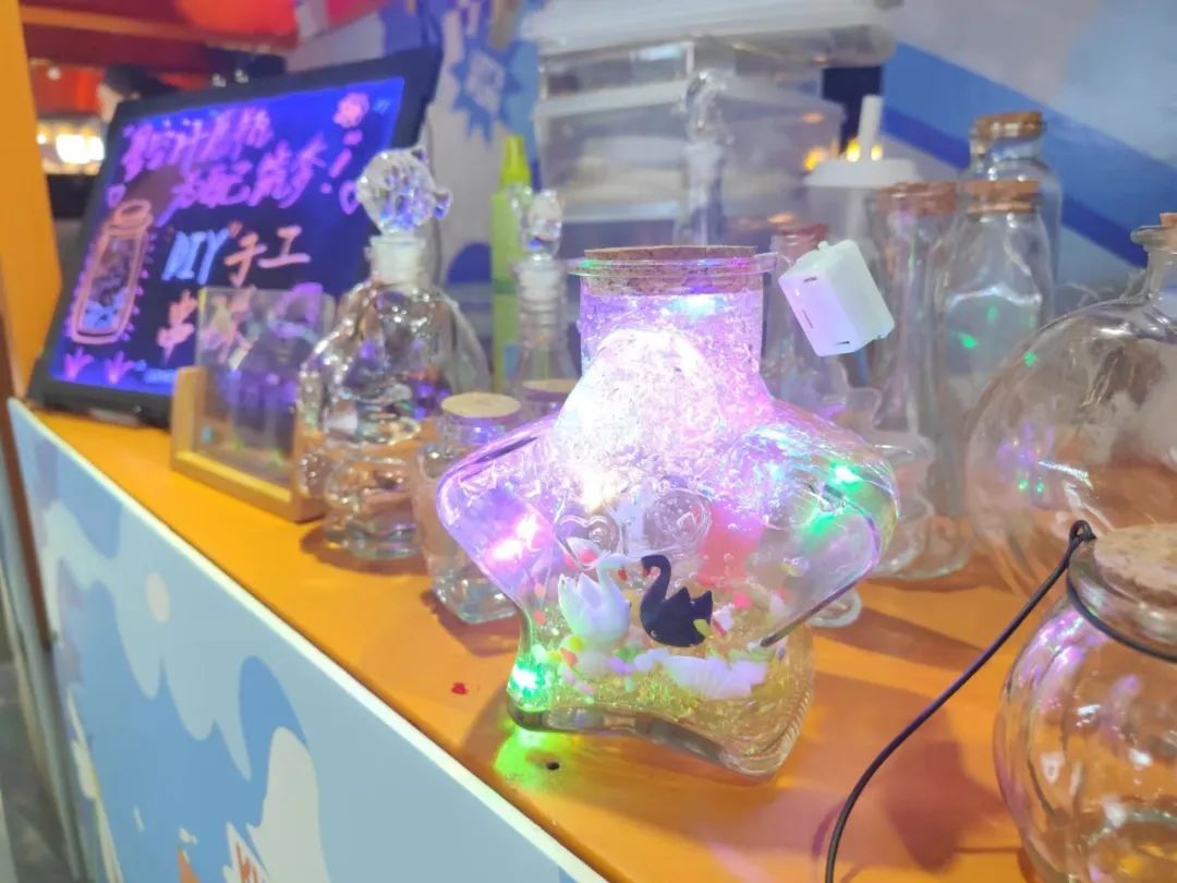 創(chuàng)意無限,深藏blue,快樂出擊!2號攤位心愿海洋瓶主打自制繽紛多彩的海洋瓶,打造屬于自己的浪漫海域。拾取絕美材料包于方寸瓶子之間,蕩漾水波、斑斕貝殼、漂亮海星......把心愿藏進大海,把繽紛海洋裝進瓶子,我們的征途是星辰大海!