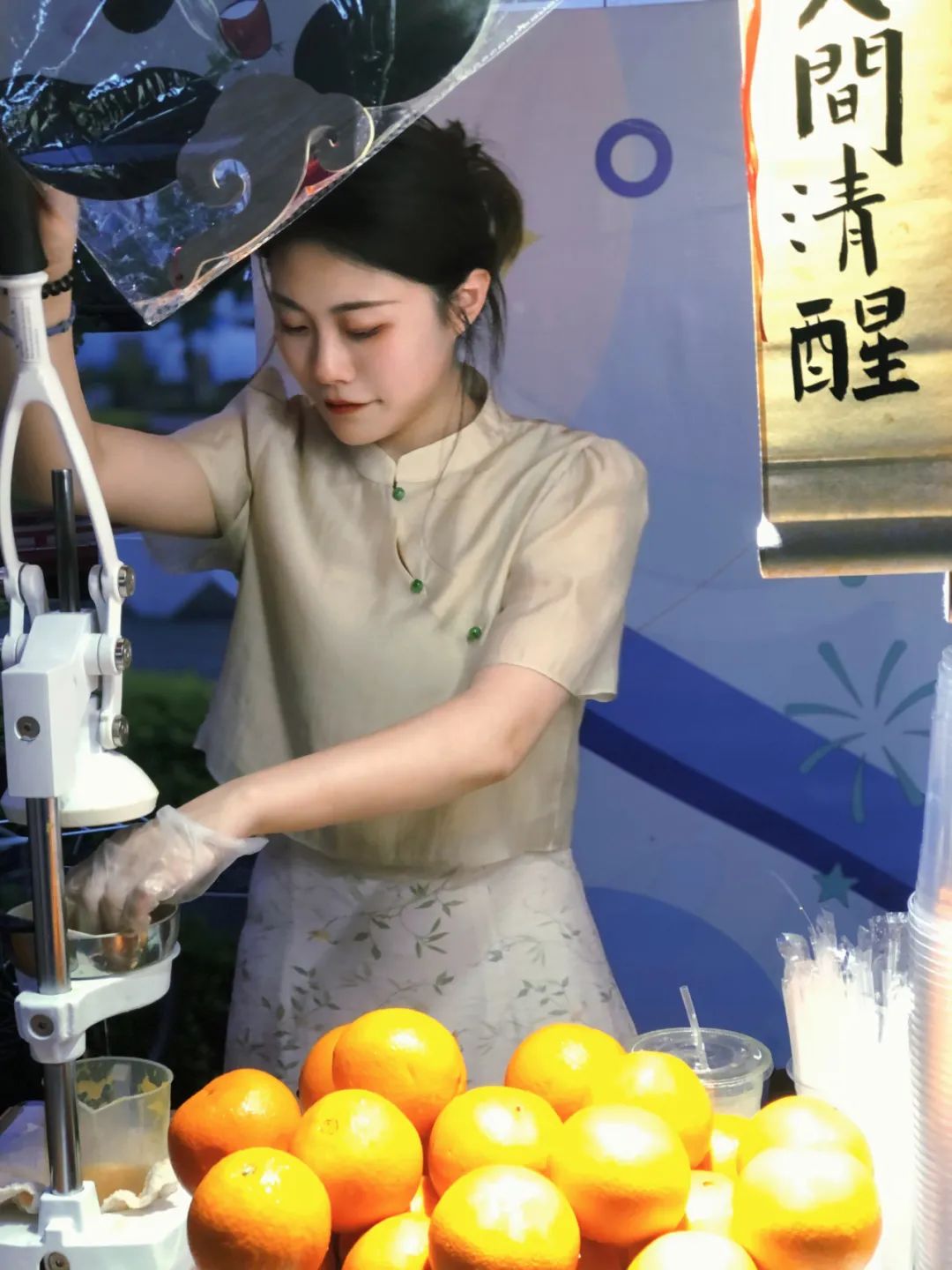 穿梭在琳瑯滿目的市集內(nèi),人頭攢動,熱鬧非常。萬物“橙”書法攤位吸引不少市民游客前來捧場,小仲是萬物“橙”書法攤位的“老板”,攤位主要售賣鮮榨橙汁與書法文創(chuàng),作為90后攤主,她售賣的不只是商品,更是一種“生活態(tài)度”,正如她的廣告“不只是販賣手藝,而是把生命中的一段浪漫時光,物化給了你”。“這些書法小文創(chuàng)買的人很多,擺攤活動豐富了我的業(yè)余生活,擺攤過程中也遇到了很多有趣的顧客,發(fā)生了很多暖心的故事,這些都是我寶貴的人生經(jīng)歷和美好回憶。”小仲說到。加入集市后,她不僅實現(xiàn)了自己的“創(chuàng)業(yè)夢”,還結識了一群志同道合的朋友,她們一起出攤,一起交流心得,這讓她的夜生活變得十分充實。