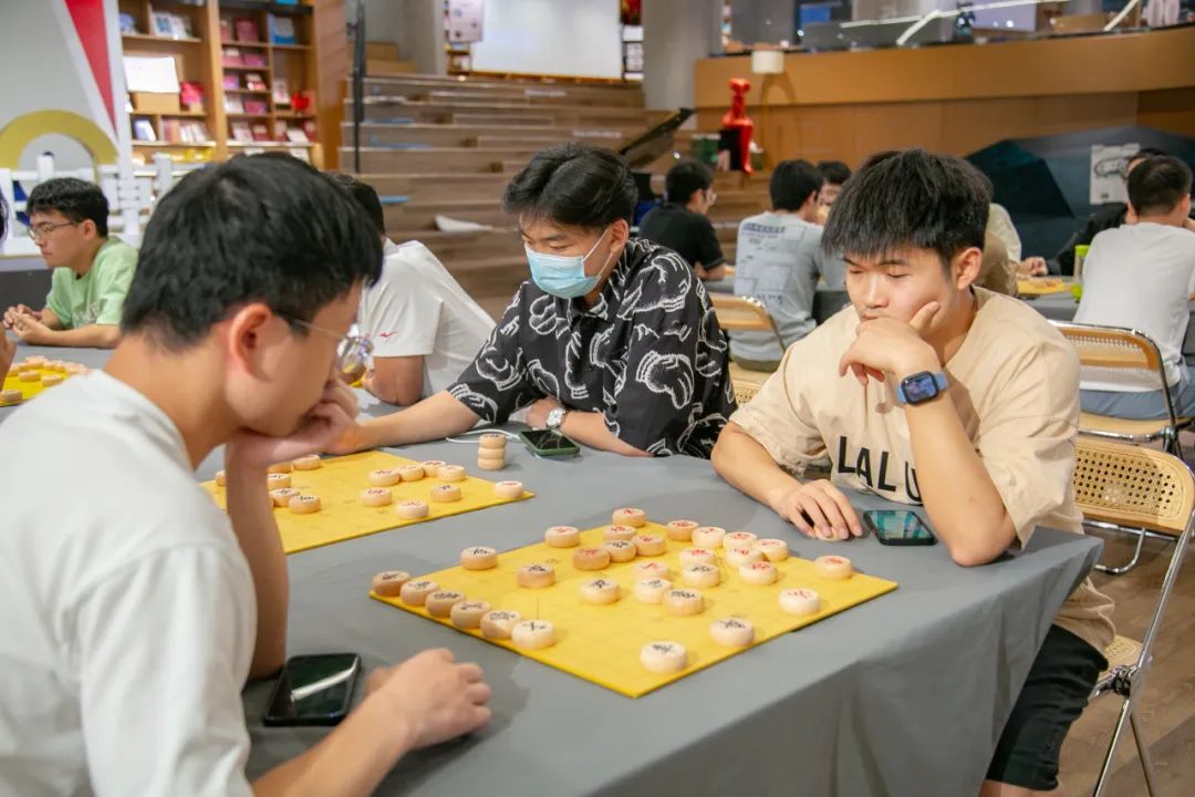 盛夏之夜,晚風(fēng)習(xí)習(xí),棋盤在大廳中央一字排開,參賽選手坐在棋桌前,執(zhí)棋縱盤,神情專注,沉浸在“棋”樂融融的世界中。精彩對弈吸引了眾多觀眾駐足觀戰(zhàn),現(xiàn)場充滿了歡笑與贊美,氣氛十分活躍。