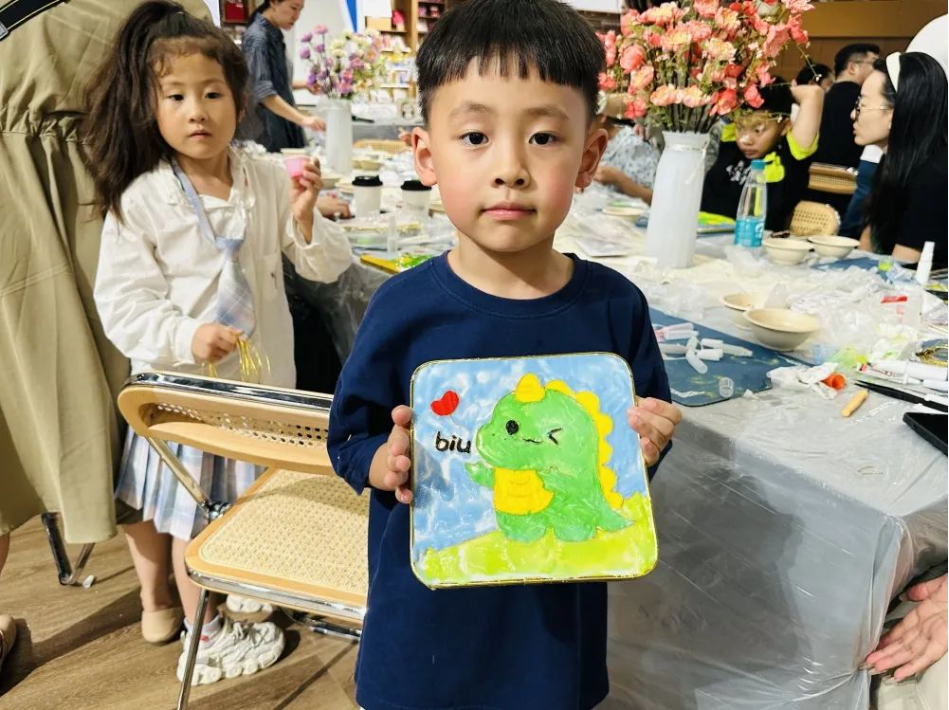 掐絲琺瑯工藝是我國非物質(zhì)文化遺產(chǎn)之一,這是一種在金或銅胎上用金屬細(xì)絲掐出圖案,再填上顏色,經(jīng)焙燒、研磨等多道工序形成精美器皿的技藝?;顒?dòng)中,在非遺老師的指導(dǎo)和講解下,大家一邊了解掐絲琺瑯的歷史及工藝特點(diǎn),一邊循序漸進(jìn)地按照掐絲、點(diǎn)藍(lán)、風(fēng)干等步驟制作自己的掐絲琺瑯創(chuàng)意作品。不僅大人們興趣盎然,活動(dòng)也吸引了很多小朋友積極參與,現(xiàn)場氛圍歡快熱鬧。