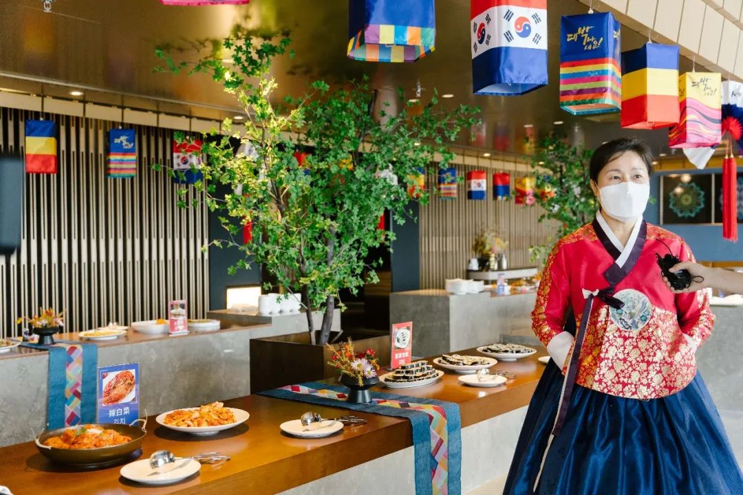 在中韓文化客廳三樓還設(shè)置了韓式餐飲體驗(yàn)區(qū),來(lái)自韓商會(huì)婦女聯(lián)合會(huì)的韓國(guó)料理老師們精心準(zhǔn)備了地道的韓國(guó)美食,炒年糕、海帶湯、牛肉餅等等美味俘獲了眾多參展者的心。
