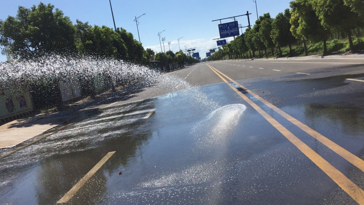 在雨露花園二期出入口,一臺噴射出大片白色水霧的機器十分引人注目。“這是我們控制揚塵的得力武器。”項目負責人王昌盛自豪地說:“這臺機器叫做霧炮機。工地行駛的大型車輛很容易帶起大量的塵土,霧炮機通過風機的風量和風壓將水霧化后噴射出來,水霧與空氣中的粉塵凝結(jié)后降落,從而達到控制揚塵的目的。與傳統(tǒng)方式相比,霧炮機發(fā)射的水霧還能增加空氣濕度,細小的霧珠也不會淋濕來往行人的衣物。”