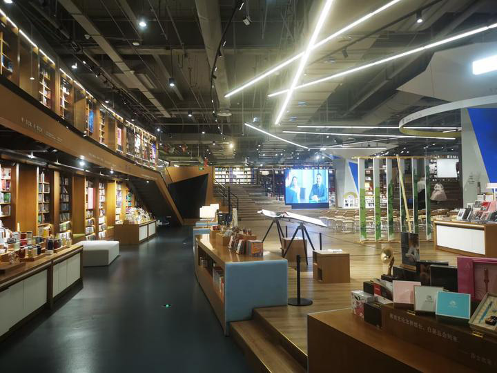 5.6米巨幕書墻讓讀者置身于鱗次櫛比的書架間,徜徉于知識海洋。藝術(shù)書區(qū)匯集國內(nèi)外150多家出版社、藝術(shù)機(jī)構(gòu)出版品,展陳藝術(shù)裝置“永不落幕的展覽”大書展。中心書區(qū)創(chuàng)新“閱讀+體驗”運(yùn)營模式,集合自助閱讀、交流分享、文化活動等多種功能。除一層精品圖書外,二層藝術(shù)空間、三層主題餐廳還提供文創(chuàng)產(chǎn)品、親子閱讀、輕食餐飲等生活體驗,讓閱讀空間的內(nèi)涵更加多元化。