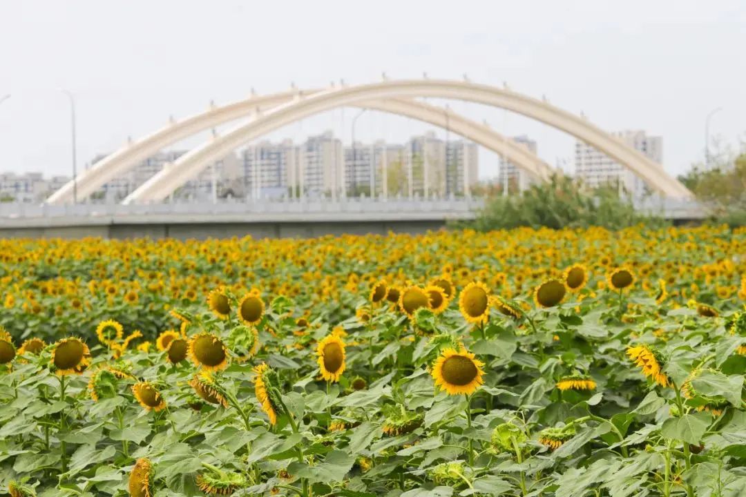 客廳傍湖而建,它就是鳳依湖。湖邊是放松與休閑的天堂,趁著秋日上午陽光正好、微風(fēng)不涼,沿湖邊漫步,東西南北四個(gè)特色功能區(qū)——國(guó)際藝術(shù)之原、和諧靜思之秋、木槿花開之海、繽紛未來之谷各具風(fēng)情,岸邊步道、橋梁猶如一條綢帶蜿蜒貫通起各個(gè)區(qū)域,把秋色的湖邊裝進(jìn)“籃子”。秋天是屬于金黃色的,整片向日葵花海燦爛開放,像油畫一般復(fù)古浪漫,趕快來打卡拍照吧!
