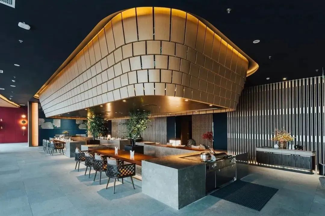 中韓文化客廳三樓主題餐廳匯聚了全市首家高端沉浸式日韓鐵板燒和港式茶餐廳,日式的深遠(yuǎn)幽靜與港式的市井繁華在這里交織呼應(yīng)。庭院風(fēng)格的迎客大廳,運(yùn)用樹、木、石等天然材質(zhì),以現(xiàn)代設(shè)計(jì)手法結(jié)合傳統(tǒng)的庭院式布局,將和式的纖細(xì)與中式的優(yōu)雅完美融合,摒棄一切多余的裝飾,演繹簡(jiǎn)素質(zhì)樸的自然之美??腿擞纱寺饺胫黝}餐廳,如品嘗正餐前的開胃小菜,開啟難忘的美食體驗(yàn)之旅。