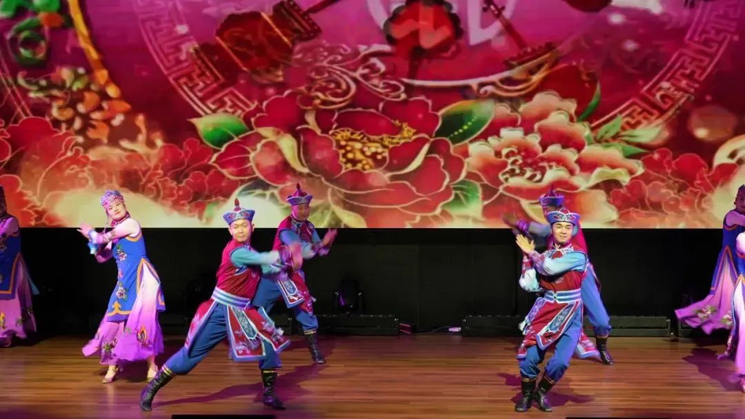 扭肩、甩胯、甩臂、拍胸......伴隨著鏗鏘有力的擊鼓聲,文藝匯演拉開序幕。新疆民族男子舞蹈《盛世貝倫》《情系草原》《黑走馬》節(jié)奏明快、舞姿灑脫,充滿張力,令人熱血沸騰,臺下的觀眾不禁跟著一起搖動身體,拍打節(jié)拍,心兒早已飛向廣闊的草原。