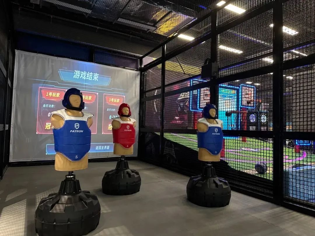 基于拳擊運動傳統(tǒng)的形式進行大膽的創(chuàng)新和設計,為打造極致的運動體驗,模擬了挑戰(zhàn)拳館的場景,使參與者與游戲里面的角色進行對決,玩家使用海綿棒或穿戴拳套擊打人偶得分,結合場景和 360°的音效環(huán)繞,營造沉浸式音樂拳擊運動體驗,十分解壓。