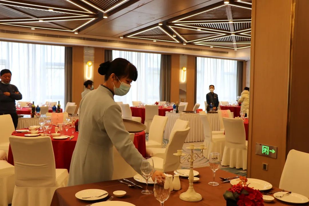 “一張10人臺(tái)的餐桌,碗、勺、筷、碟、酒杯等需在17分鐘內(nèi)按規(guī)范擺好;餐碟、筷子尾距桌邊1.5CM餐具,間距1CM。”32名員工正在中韓商匯三樓大廳進(jìn)行緊張的現(xiàn)場(chǎng)實(shí)操考試,由3名考評(píng)員、2名現(xiàn)場(chǎng)督導(dǎo)、1名餐飲業(yè)指導(dǎo)老師組成的考評(píng)團(tuán),在現(xiàn)場(chǎng)仔細(xì)觀察員工們的操作。“餐廳服務(wù)員的技能等級(jí)共有五級(jí),按國(guó)家規(guī)定,每級(jí)均有相應(yīng)的待遇,級(jí)別越高待遇越好。”酒店公司總經(jīng)理丁正東說(shuō)道,這是2023年首次開(kāi)考的餐廳服務(wù)四級(jí)職業(yè)技能等級(jí)認(rèn)定考試,考試內(nèi)容分為筆試、實(shí)操、口試等環(huán)節(jié),考試內(nèi)容為餐飲服務(wù)中關(guān)于宴會(huì)服務(wù)、顧客服務(wù)等相關(guān)服務(wù)技能,有理論考試也有實(shí)操考試,均參照國(guó)家職業(yè)資格證書(shū)考核標(biāo)準(zhǔn)進(jìn)行考核認(rèn)定。
