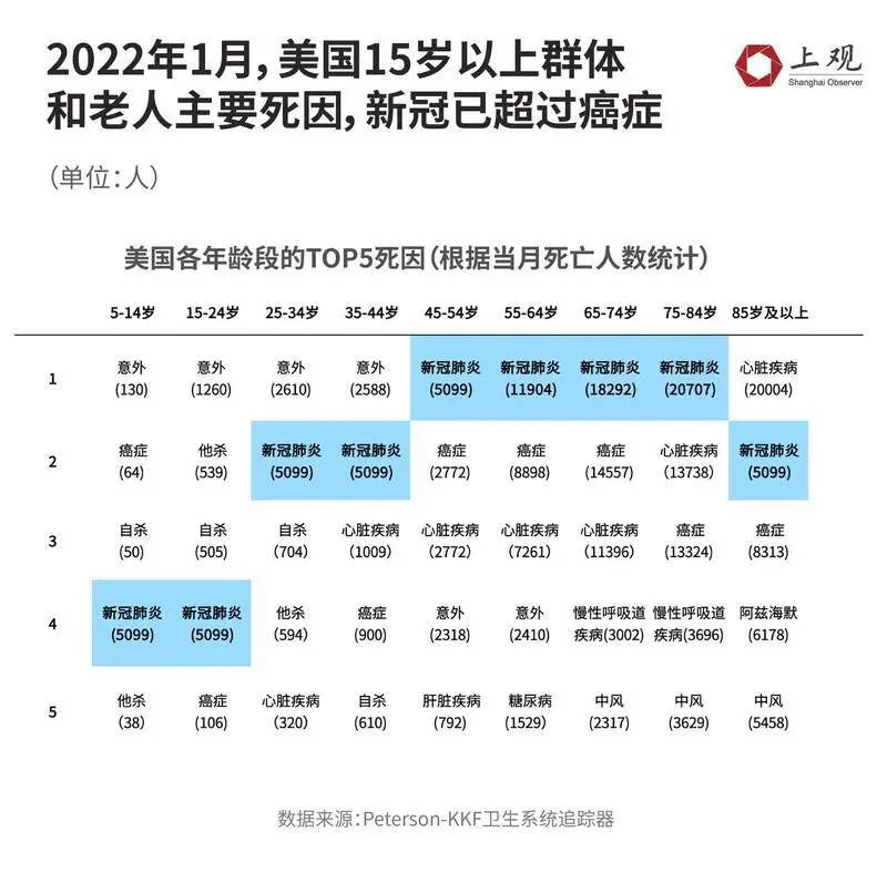 根據(jù)美國(guó)CDC4月19日發(fā)布的數(shù)據(jù),在統(tǒng)計(jì)的7000萬(wàn)確診病例中,85歲以上老年群體的占比最少,僅為1.6%,而18至29歲人群的確診病例最多,占比為21.3%。但是,在同時(shí)期的死亡人數(shù)中,85歲以上人群的占比是最多的,達(dá)到26.5%,是18至25歲人群死亡人數(shù)占比(0.7%)的37.86倍。此外,75-84歲與65-74歲老年群體的死亡人數(shù)占比也分別達(dá)到26%與22%。