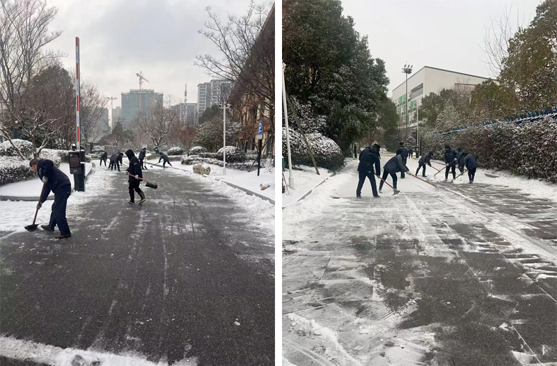 寒潮突至,降雪來襲,道路積雪結(jié)冰給住客出行帶來諸多不便與安全隱患。為全力保障住客出行安全,酒店公司迅速響應(yīng),全體員工聞令而動,不畏凜冽寒風(fēng),滿懷熱忱投入到清雪除冰工作中。