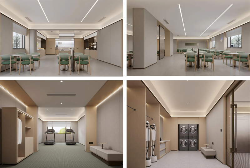 不止于住,更是一站式旅居體驗。健身區(qū)專業(yè)設備隨時解鎖活力,洗衣區(qū)智能洗烘一體機與掛燙設備輕松解決出行煩惱,茶空間雅致氛圍兼顧商務洽談與社交需求,讓每一段旅程都從容愜意。