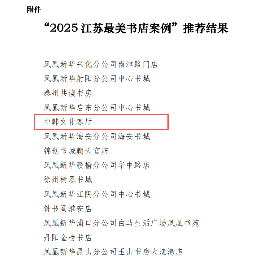 喜報!中韓文化客廳榮獲“2025江蘇最美書店案例”!
