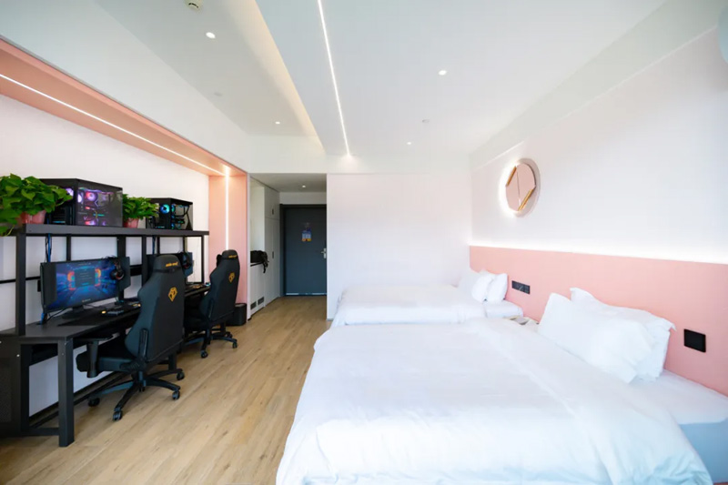 KK電競(jìng)酒店既有70后、80后的懷舊,又有90后、00后的輕奢。一樓懷舊區(qū)配置街機(jī)、小霸王游戲機(jī)、PS4等游戲設(shè)備供各年齡段客戶免費(fèi)體驗(yàn),電競(jìng)教室可同時(shí)容納30人開(kāi)展電競(jìng)比賽,目前已組織開(kāi)展王者榮耀邀請(qǐng)賽、CS GO精英邀請(qǐng)賽、無(wú)畏契約精英邀請(qǐng)賽,吸引300余人參與。為滿足年輕客戶的不同需求,酒店一至三層設(shè)置電競(jìng)雙人房、三人房、四人房、豪華五人房等房型共30間,房間內(nèi)配有高配置電腦及迷你食品飲料吧服務(wù),另有國(guó)內(nèi)外單機(jī)、網(wǎng)絡(luò)游戲等。